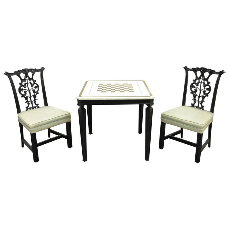 Game Chess Table And Set Of Four Italian Klismos Chairs